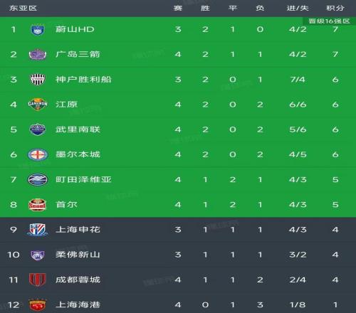 亚冠精英联赛东亚区第4轮结束了4场比赛,最新积分榜如下!