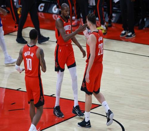 两队下半场都将身体拉满,谢泼德下半场状态回归,单节砍下10分,在杜兰特和谢泼德两人的强势发挥下,火箭最多领先14分。
