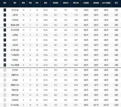 CBA第19轮的比赛已经结束,这轮比赛打得非常激烈,四强里的广厦男篮、上海男篮和青岛男篮都输掉了比赛,只有广东男篮力克了山西男篮。其他的比赛中,北京男篮输给了同城对手北控男篮,曾经的三连冠强队辽宁男篮更是不敌新疆男篮遭遇四连败,沦为了一支弱旅。先来看一下这轮比赛的具体对阵情况,然后看一下积分榜排名的变化。