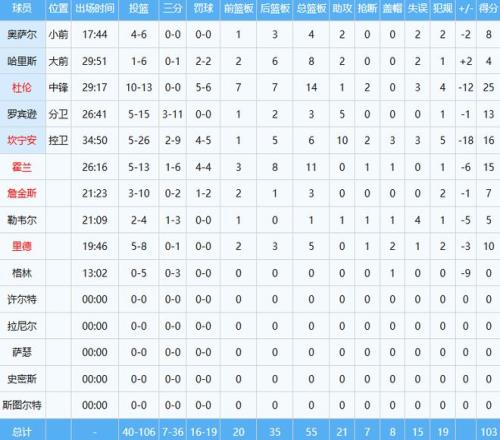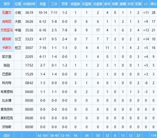 马刺数据如下: