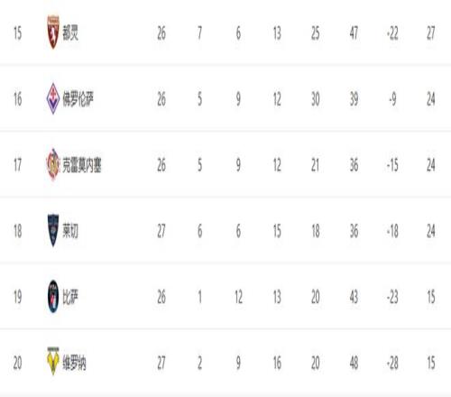 随着黑马31逆转+卫冕冠军21!意甲最新积分榜:25名差6分