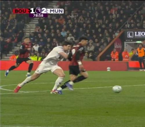 第一个争议出现在第67分钟,阿马德-迪亚洛禁区内倒地,但裁判没有任何表示,VAR介入后也维持判罚,这让曼联球员非常不满。